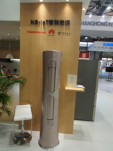 しかしこの裏方のNB-IoTが、今度はコンシューマーの目に触れる部分に使われようとしている。中国の大手家電メーカー、四川長虹電器(長虹、Chang Hong)はファーウェイと組んで家電製品へのNB-IoTモジュール搭載を進めようとしている。2018年3月に上海で開催された中国の家電展示会「AWE2018」の長虹ブースには、試作モデルとしてNB-IoT搭載の冷蔵庫とエアコンが展示されていた。