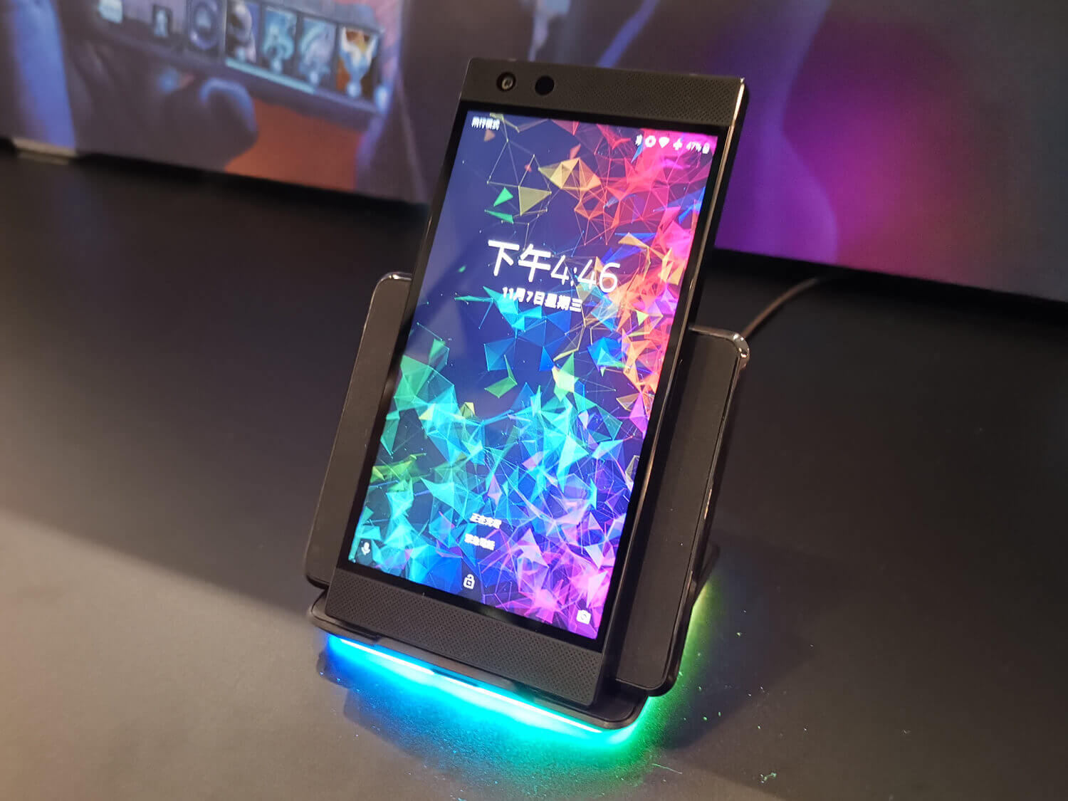 Razer製品同様に光る充電台。他社スマホも利用できる