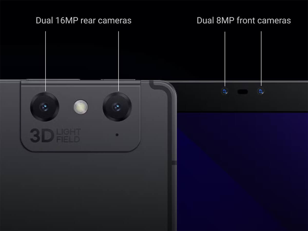nubia Pad 3Dには800万画素のフロントカメラが2つあり、ユーザーの目を常にトラッキングすることで裸眼での3D表示を可能としている。また背面には1600万画素のデュアルカメラも搭載、一般的なスマートフォンのような「広角と望遠」のデュアルではなく、2つのカメラで同時撮影することで3D写真や動画を撮影できるのだ。